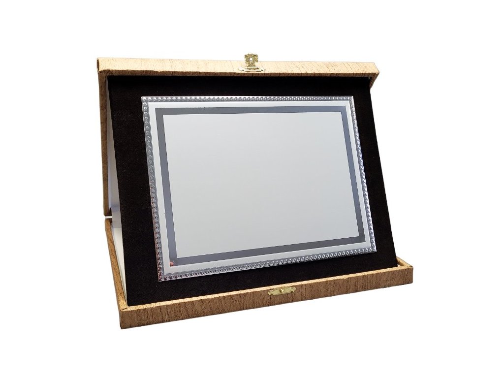 Az elegáns emléktábla egy barna, tájba illő dobozban található. A szublimációs hordozó egy dekoratív lap, amely ezüstös csillogású, oldalain tükrös részletekkel. A plakett kialakítása miatt ideális választás különböző típusú társadalmi eseményekre, különleges sporteseményekre stb. Az ár tartalmazza a szublimálást.
