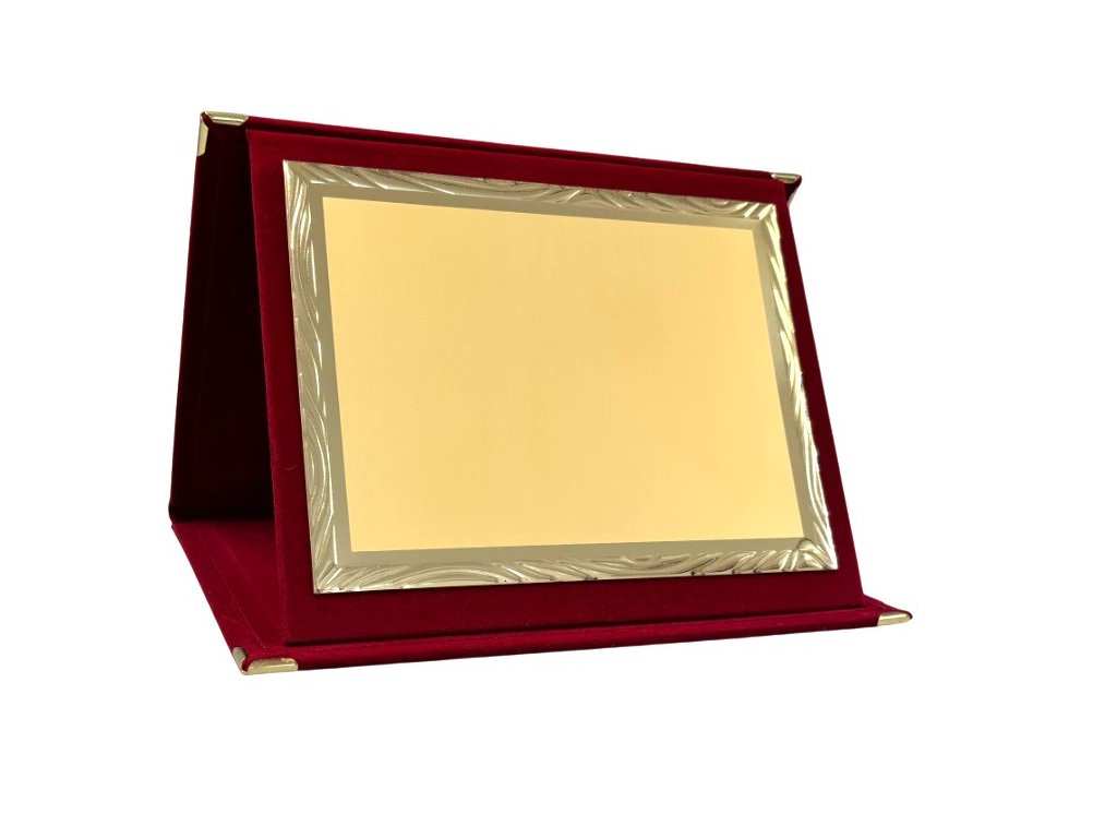 Az elegáns plakett egy piros bársony SLIM dobozban található. A szublimációs hátlap egy dekoratív lap, amely arany csillogású, oldalain tükrös részletekkel. A plakett kialakítása miatt ideális választás különféle társasági eseményekre, különleges sporteseményekre stb. Az ár tartalmazza a szublimálást.
