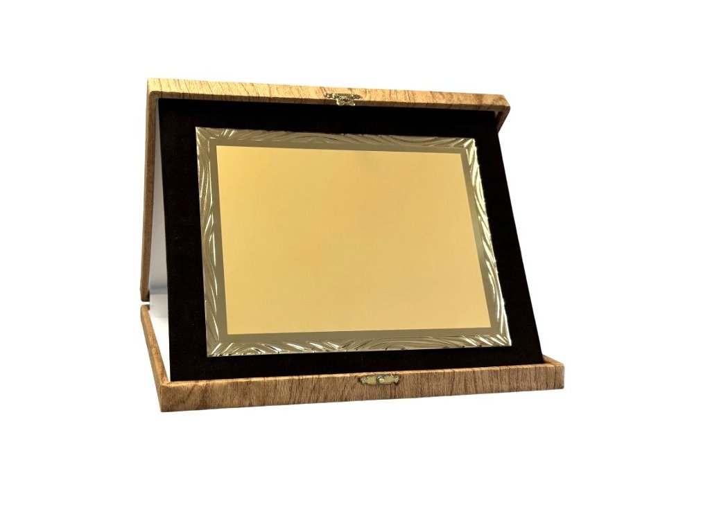 Az elegáns emléktábla egy barna, tájba illő dobozban található. A szublimációs hordozó egy dekoratív lap, amely arany csillogású, oldalain tükrös részletekkel. A plakett kialakítása miatt ideális választás különböző típusú társadalmi eseményekre, különleges sporteseményekre stb. Az ár tartalmazza a szublimálást.