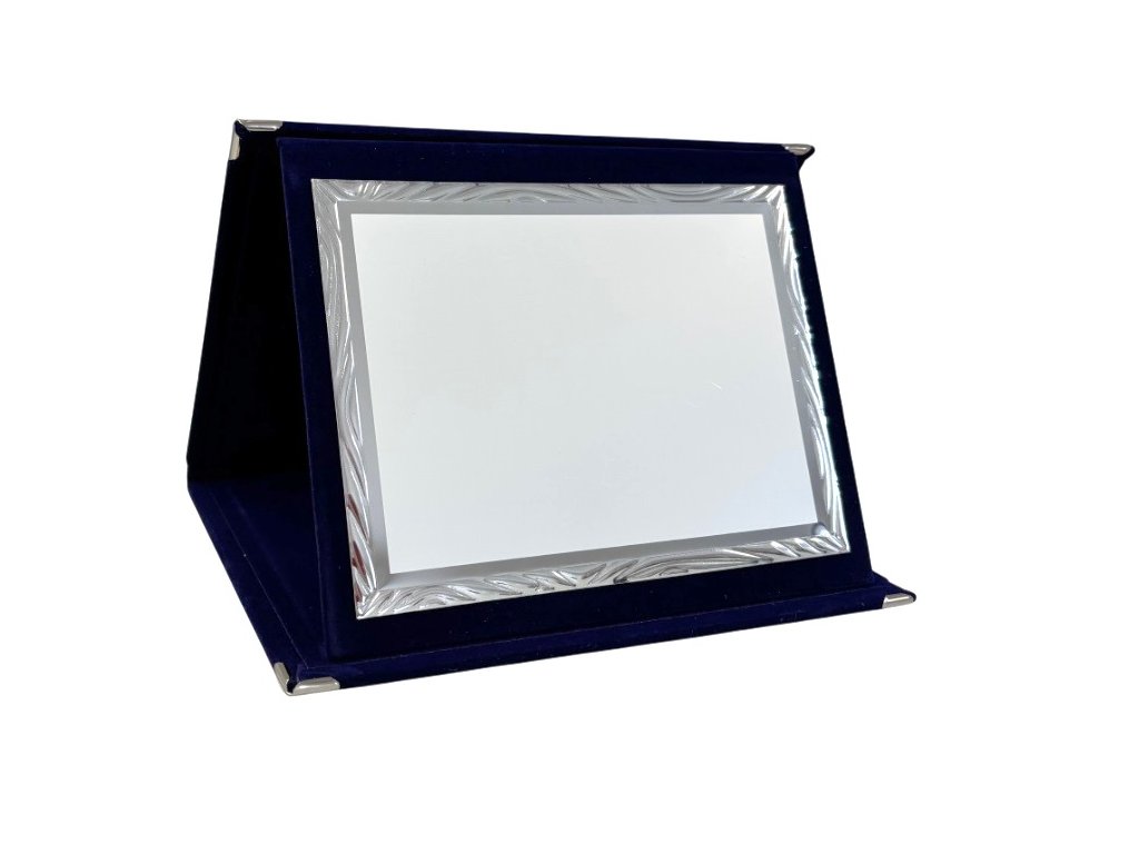 Elegáns plakett egy kék bársony dobozban, SLIM kivitelben. A szublimációs hátlap egy dekoratív lap, amely ezüstös fényű, oldalain tükrös részletekkel. A plakett kialakítása miatt ideális választás különböző típusú társadalmi eseményekre, különleges sporteseményekre stb. Az ár tartalmazza a szublimálást.