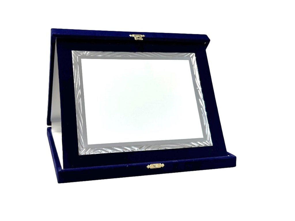 Az elegáns plakett egy kék bársony tájoló dobozban van elhelyezve. A szublimációs hátlap egy dekoratív lap, amely ezüstös csillogású, oldalain tükrös részletekkel. A plakett kialakítása miatt ideális választás különböző típusú társadalmi eseményekre, különleges sporteseményekre stb. Az ár tartalmazza a szublimálást.