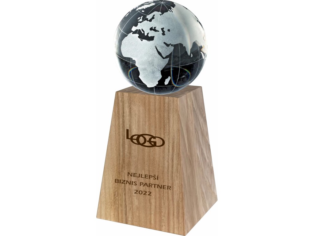 Elegáns trófea, fa alapra szerelt földgömbbel, véséssel az alapon. A trófea kialakítása miatt ideális választás különböző típusú társadalmi eseményekre, különleges sporteseményekre stb.