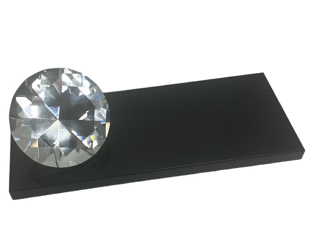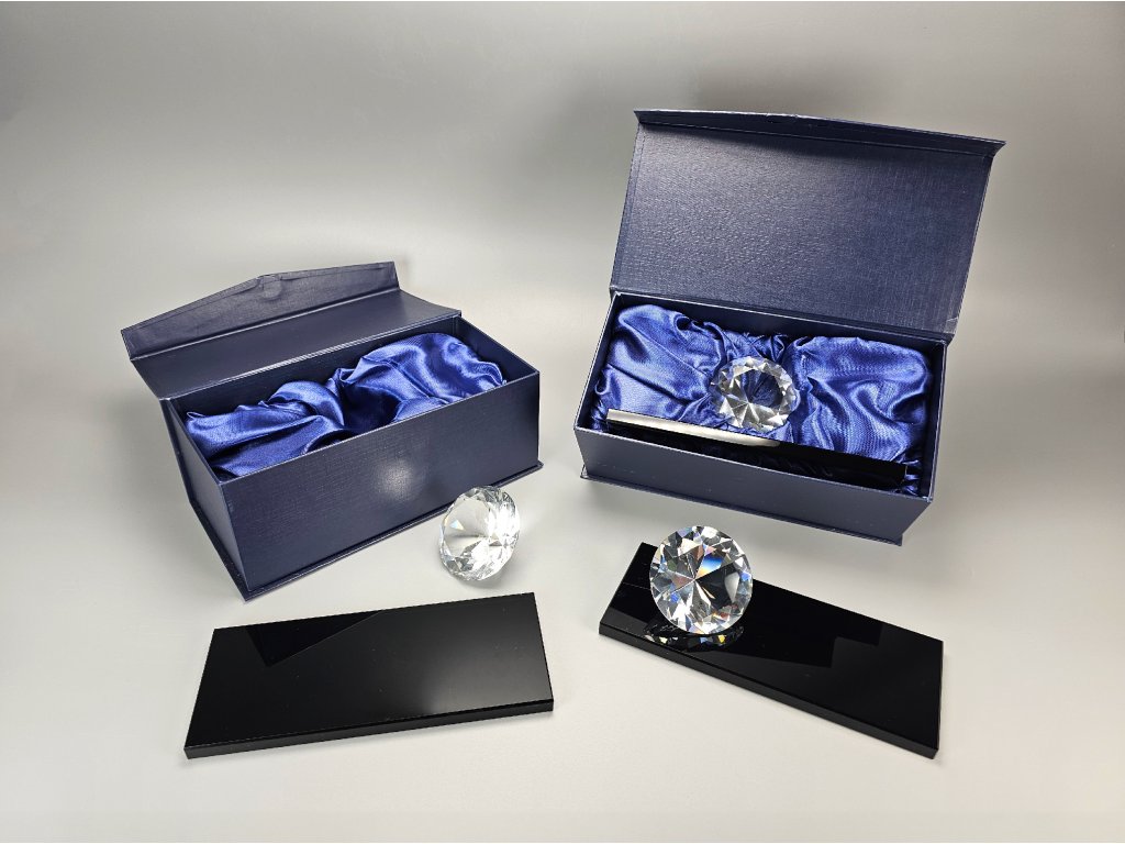 Elegáns trófea üveg talapzaton foglalt gyémánttal, véséssel a talapzaton. A trófea kialakítása miatt ideális választás különböző típusú társadalmi eseményekre, különleges sporteseményekre stb.