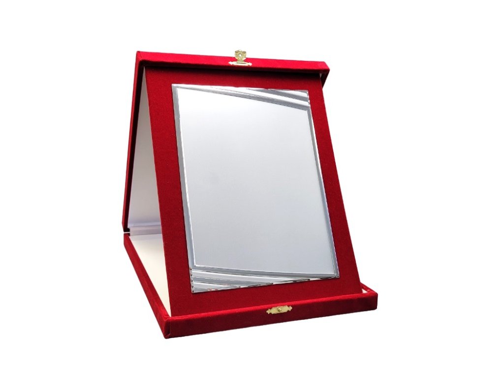 Az elegáns emléktábla egy vörös bársony, tájképi tájolású dobozban van elhelyezve. A szublimációs hátlap egy dekoratív lap, amely ezüstös fényű, oldalain tükrös részletekkel. A plakett kialakítása miatt ideális választás különböző típusú társadalmi eseményekre, különleges sporteseményekre stb. Az ár tartalmazza a szublimálást.