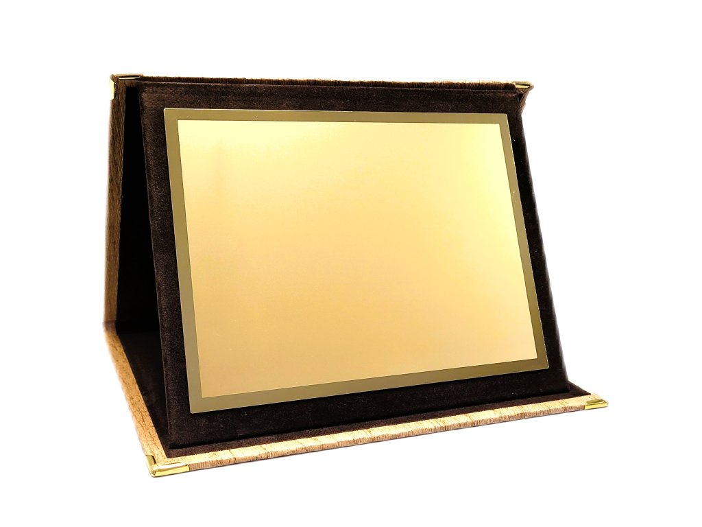 Az elegáns plakett egy barna SLIM dobozban található. A szublimációs hordozó egy dekoratív lap, amely arany csillogású, oldalain tükrös részletekkel. A plakett kialakítása miatt ideális választás különböző típusú társadalmi eseményekre, különleges sporteseményekre stb. Az ár tartalmazza a szublimációt.