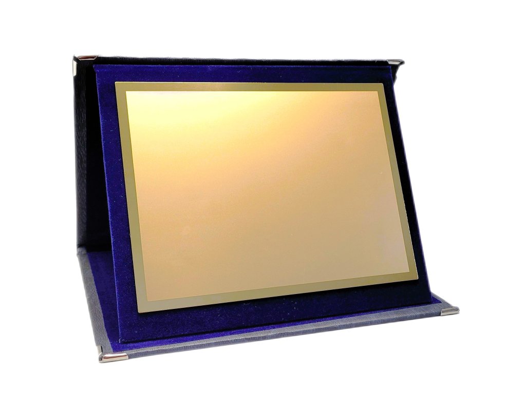 Elegáns plakett egy szürke és kék SLIM dobozban. A szublimációs hordozó egy dekoratív lap, amely arany csillogású, oldalain tükrös részletekkel. A plakett kialakítása miatt ideális választás különböző típusú társadalmi eseményekre, különleges sporteseményekre stb. Az ár tartalmazza a szublimálást.