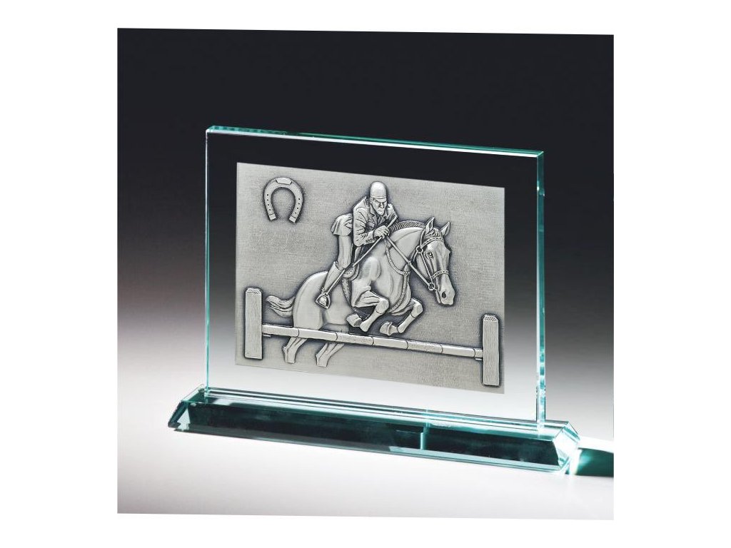 Stílusos üveg trófea öntapadós plakettel, amelyen előre megformázott 3D fém dombormű található. Az üvegből készült kivitel ideális választás különböző típusú társadalmi eseményekre, különleges sporteseményekre stb.