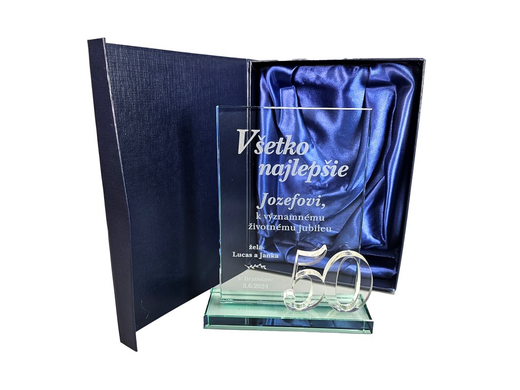 plakett üveg 7047 3D jubileumi + doboz