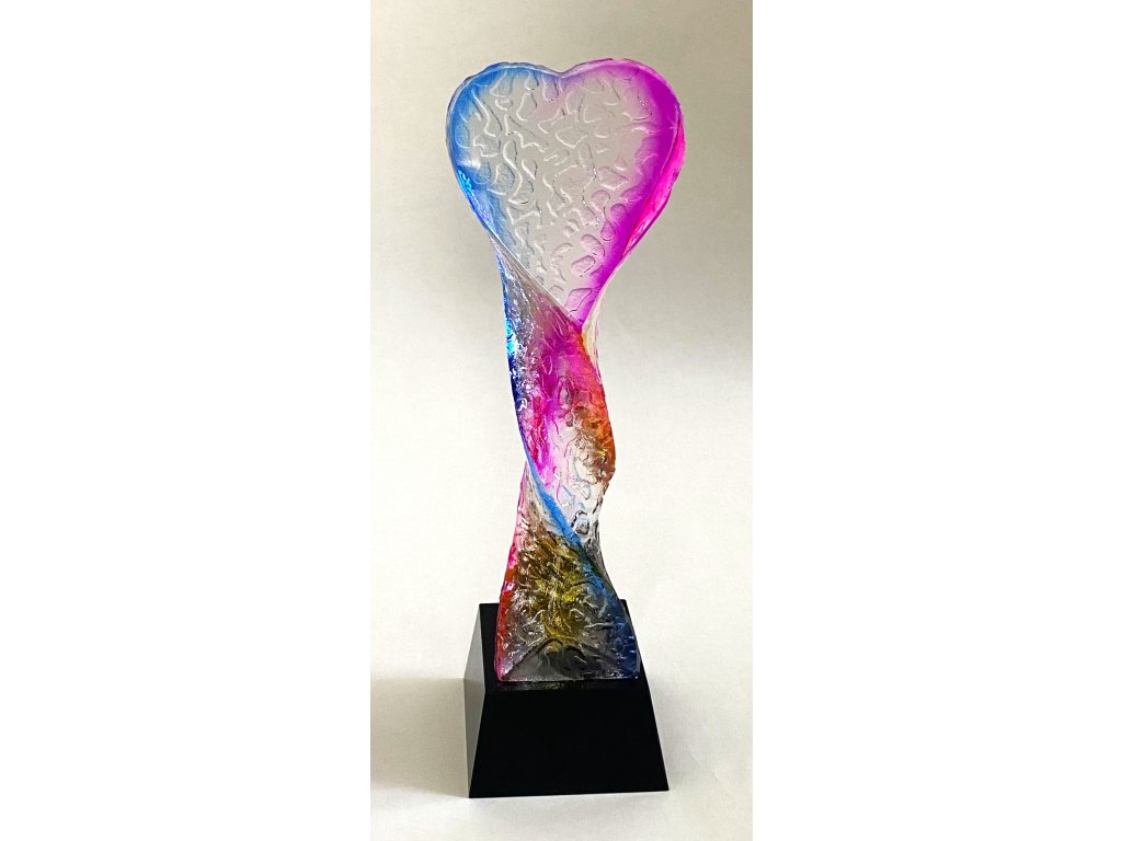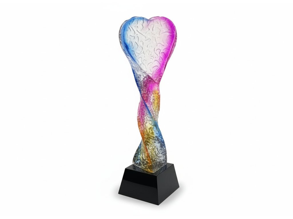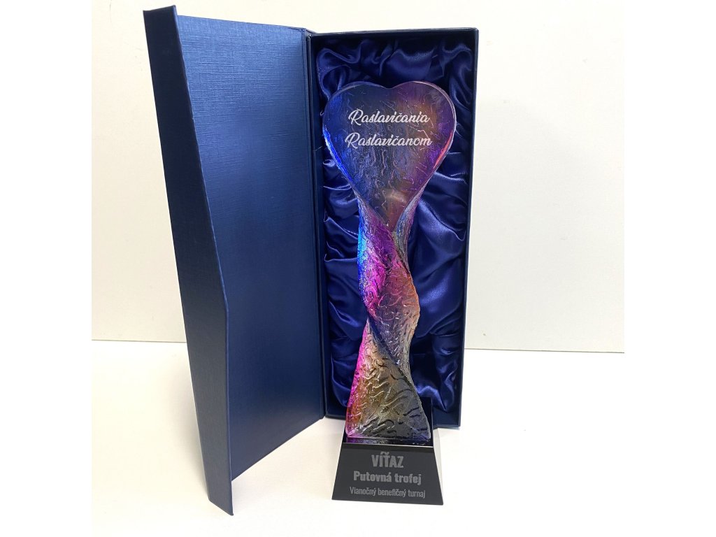 Stílusos szív alakú üveg trófea többféle színben, gravírozási lehetőséggel az alapon vagy az üveg tetején (mindkettő alkalmazása esetén a gravírozás díja 2x kerül felszámításra). Az üvegdizájn ideális választás köszönetajándéknak és különböző típusú társadalmi eseményekre, különleges sporteseményekre stb.