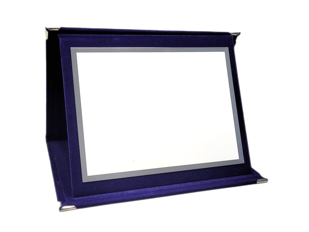 Az elegáns plakett egy SLIM kivitelű, kék bársony dobozban található. A szublimációs hátlap egy fehér dekoratív lap, amelynek oldalain ezüst tükrös részletek találhatók. A plakett kialakítása miatt ideális választás különböző típusú társadalmi eseményekhez, különleges sporteseményekhez stb. Az ár tartalmazza a szublimálást.