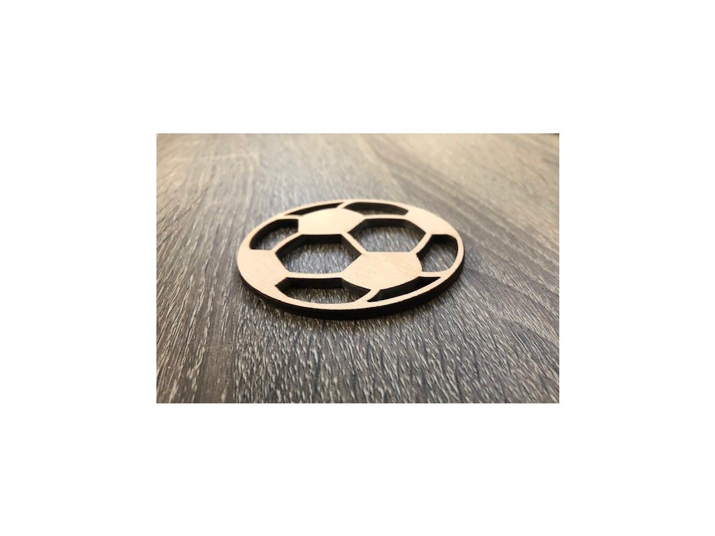 Egyedi fából készült poháralátétek készlete labdarúgó motívummal, amely alkalmas ajándékként vagy a labdarúgás szerelmeseinek örömére.