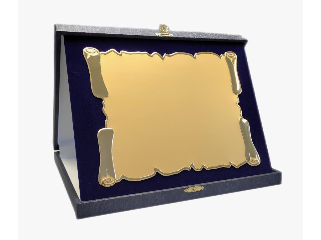 Az elegáns emléktábla egy szürke és kék, tájba illő dobozban található. A szublimációs hordozó egy dekoratív lap, amely arany fényű, enyhén 3D papirusz hatású. A plakett kialakítása miatt ideális választás különböző típusú társadalmi eseményekhez, különleges sporteseményekhez stb. Az ár tartalmazza a szublimálást.