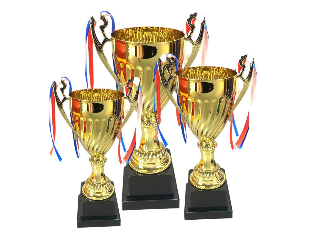Egyedi Serleg arany kivitelben . A trófea kiegészíthető gravírozott táblával, amely az alapra kerül. A díjazottak sorrendjének osztályozásához 3 magassági változat áll rendelkezésre.