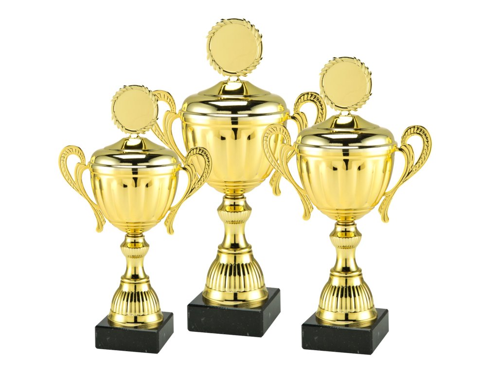 Egyedi Serleg arany kivitelben . A trófea kiegészíthető gravírozott táblával, amely az alapra kerül. A díjazottak sorrendjének osztályozásához 3 magassági változat áll rendelkezésre.