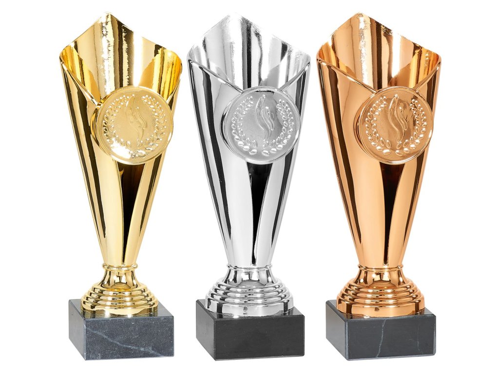 Egyedülálló serlegkészlet aranyból, ezüstből vagy bronzból, érdekes részletekkel a kehelyen, márványalapra helyezve. A trófea kiegészíthető egy 50 mm átmérőjű emblémával (nem tartozék) + gravírozott lemezzel, amely az alapra kerül. A díjazottak sorrendjének osztályozásához 3 színváltozat áll rendelkezésre.