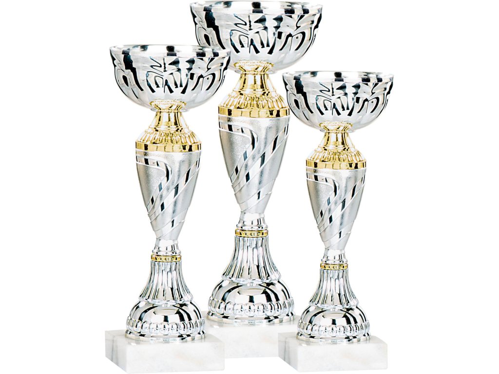 A poharak modern kialakítása egyedi formát kölcsönöz a kehelynek, amely márvány alapra van helyezve. Ideális választás minden sporttípushoz, és kiegészíthető a talapzaton elhelyezett gravírozott címkével 3 méretben kapható változat a díjazottak sorrendjének lefokozásához.