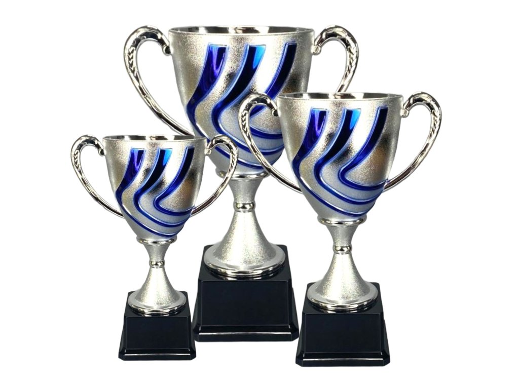 A pohárkészlet modern dizájnját a márványalapra helyezett kehely egyedi formája teremti meg. Ideális választás minden sporttípushoz, és kiegészíthető az alapra helyezett gravírozott címkével. A változat 3 méretben kapható a díjazottak sorrendjének lefokozásához.