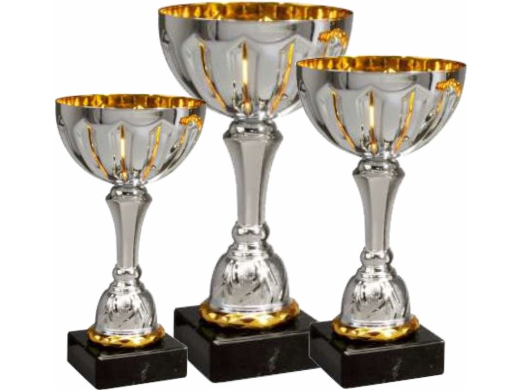 A serlegek egyediségét az egyedi forma és a díszes szárak adják, amelyek márvány talapzaton állnak. Ideális választás minden sportághoz, és a talapzaton elhelyezett gravírozott címkével egészíthetők ki. 3 méretben kaphatók a díjazottak sorrendjének fokozatos leosztásához.