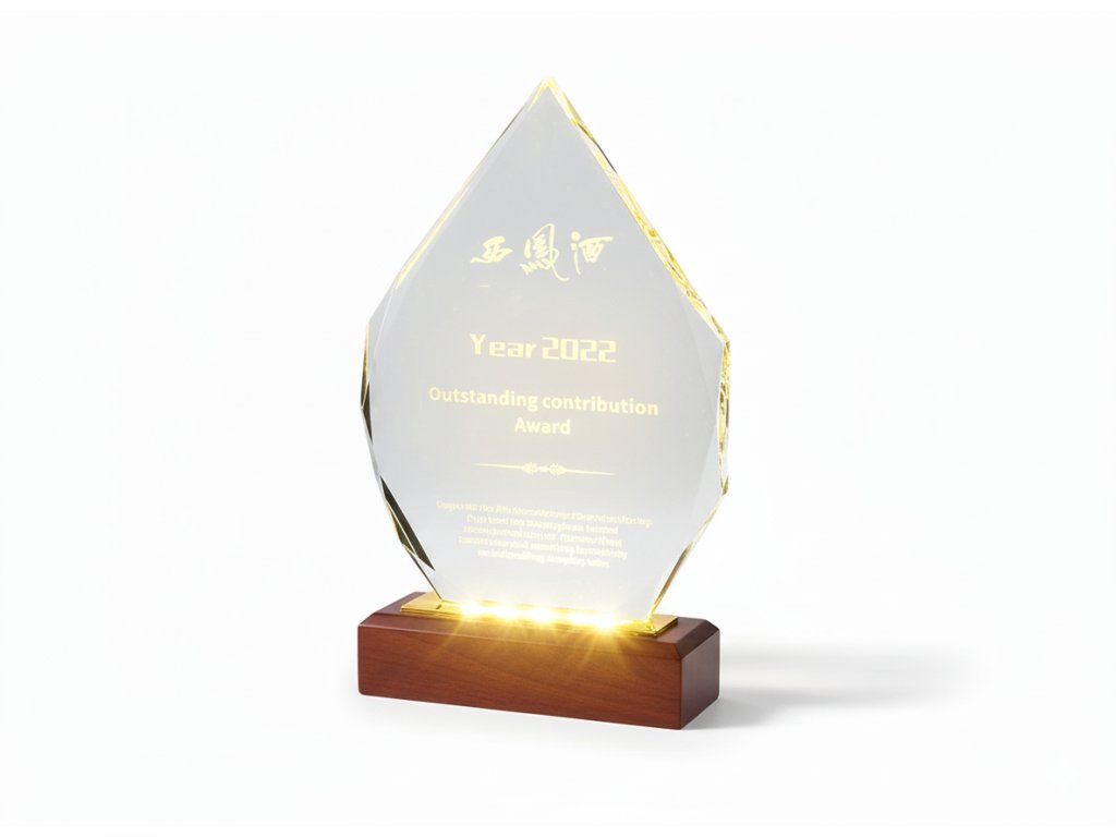 Elegáns üveg trófea üveg talapzaton, nyolcszög alakú, üvegbe vésési lehetőséggel. A trófea kialakítása miatt ideális választás különböző típusú társadalmi eseményekre, különleges sporteseményekre stb.