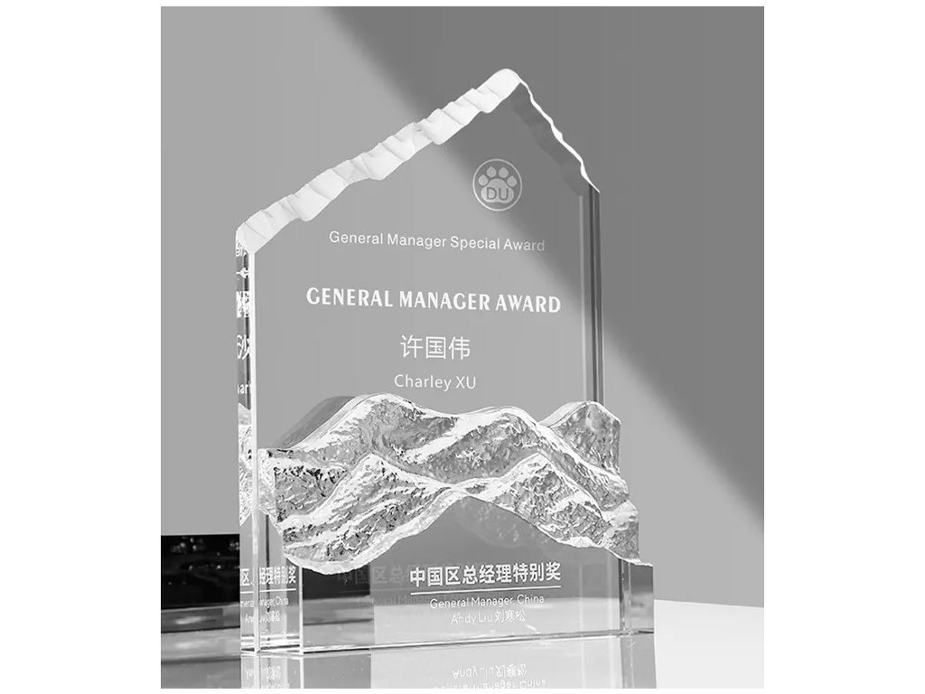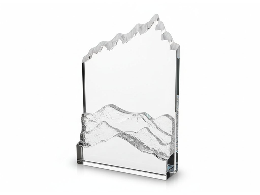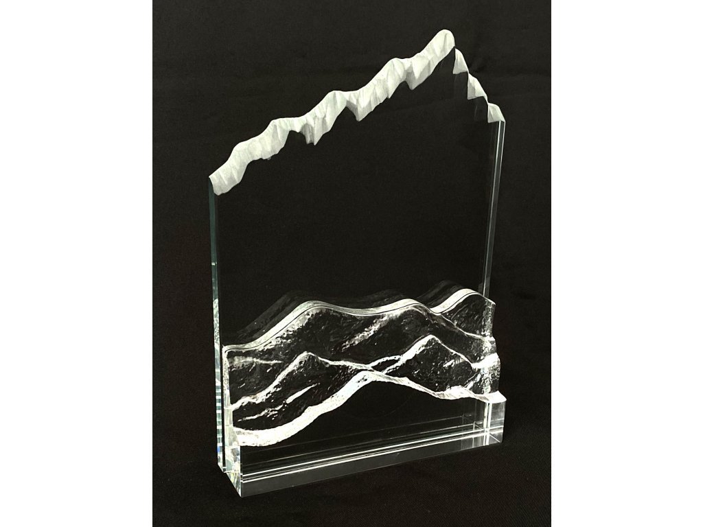 Stílusos, elegáns üveg trófea, alján világos részletekkel, az üvegre gravírozási lehetőséggel. Az üveg kialakításnak köszönhetően ideális választás különböző típusú társadalmi eseményekre, különleges sporteseményekre stb.