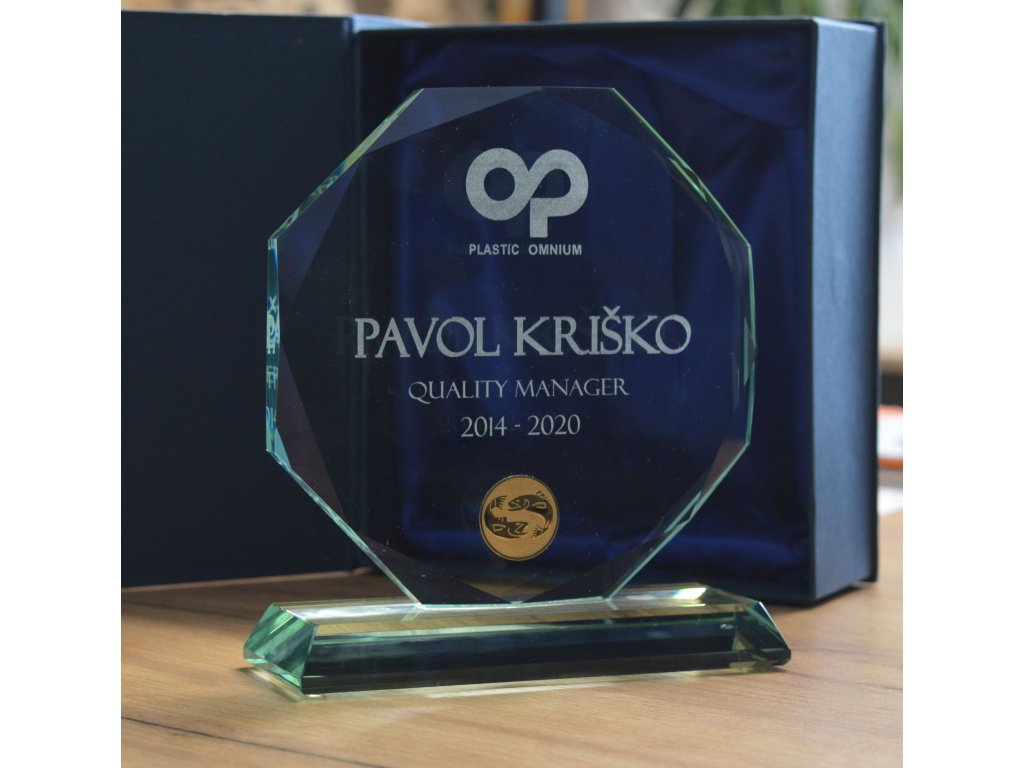 Elegáns üveg atipikus formában teszi ezt a trófeát stílusossá és egyedivé, az üvegre történő gravírozás lehetőségével. Az üveg kialakításnak köszönhetően ideális választás különböző típusú társasági eseményekre, különleges sporteseményekre stb.