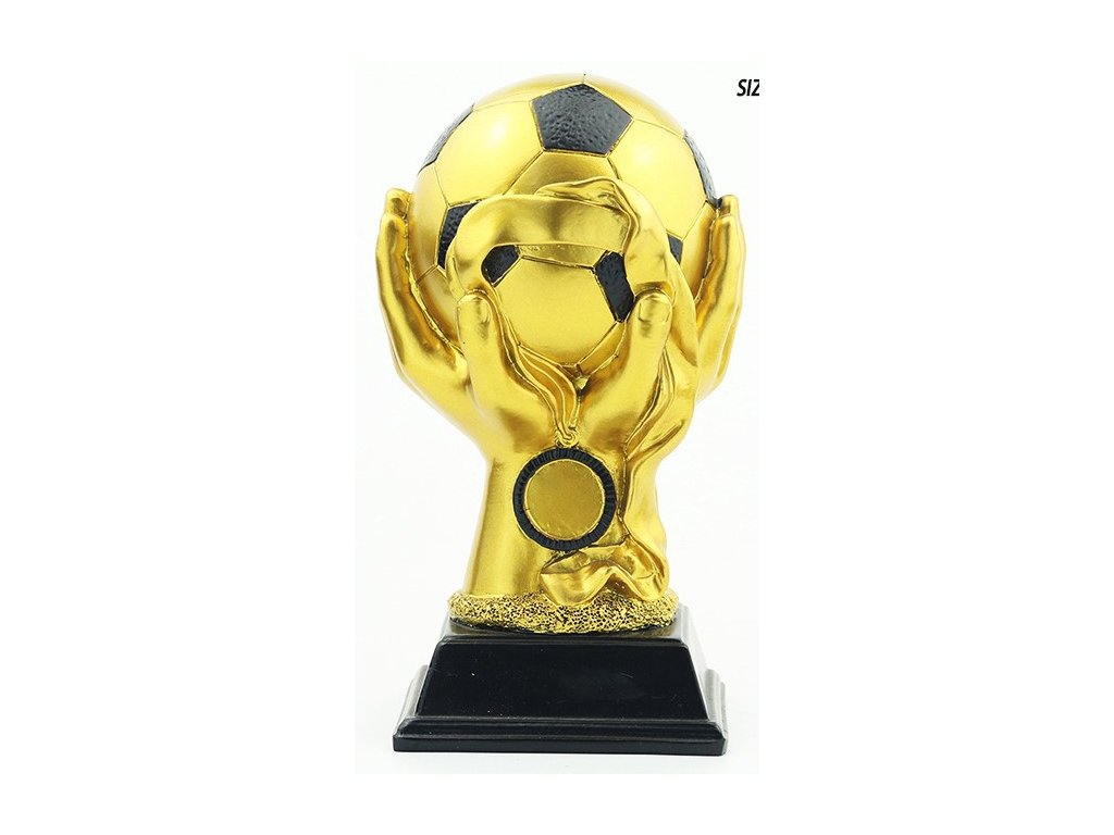 Egyedi műgyanta trófea futball/foci motívummal és a talapzatra gravírozott tábla elhelyezésének lehetőségével. Ideális választás a legjobb futballista vagy futballrajongó díjazására.