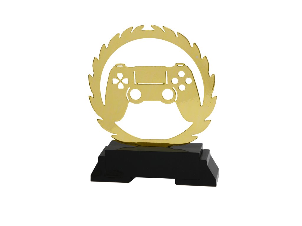 A trófea stílusos megjelenését a győztes körben elhelyezett aranyszínű joystick (playstation) adja, amely egy fekete talapzaton helyezkedik el, ahol lehetőség van gravírozott tábla elhelyezésére. A trófea ideális választás az e-sport vagy az online versenyek rajongói számára.