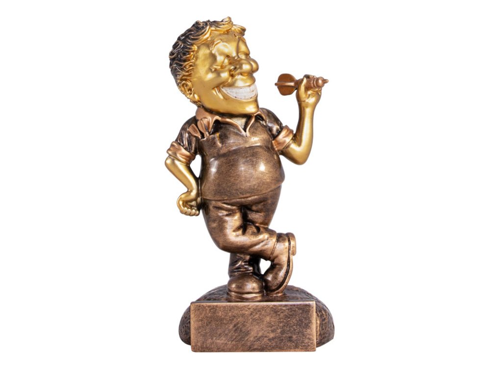 Stílusos műgyanta trófea darts motívummal és a talapzatra gravírozott tábla elhelyezésének lehetőségével. A trófea ideális választás egy darts játékos vagy egy kolléga, barát kitüntetésére bármilyen alkalomra