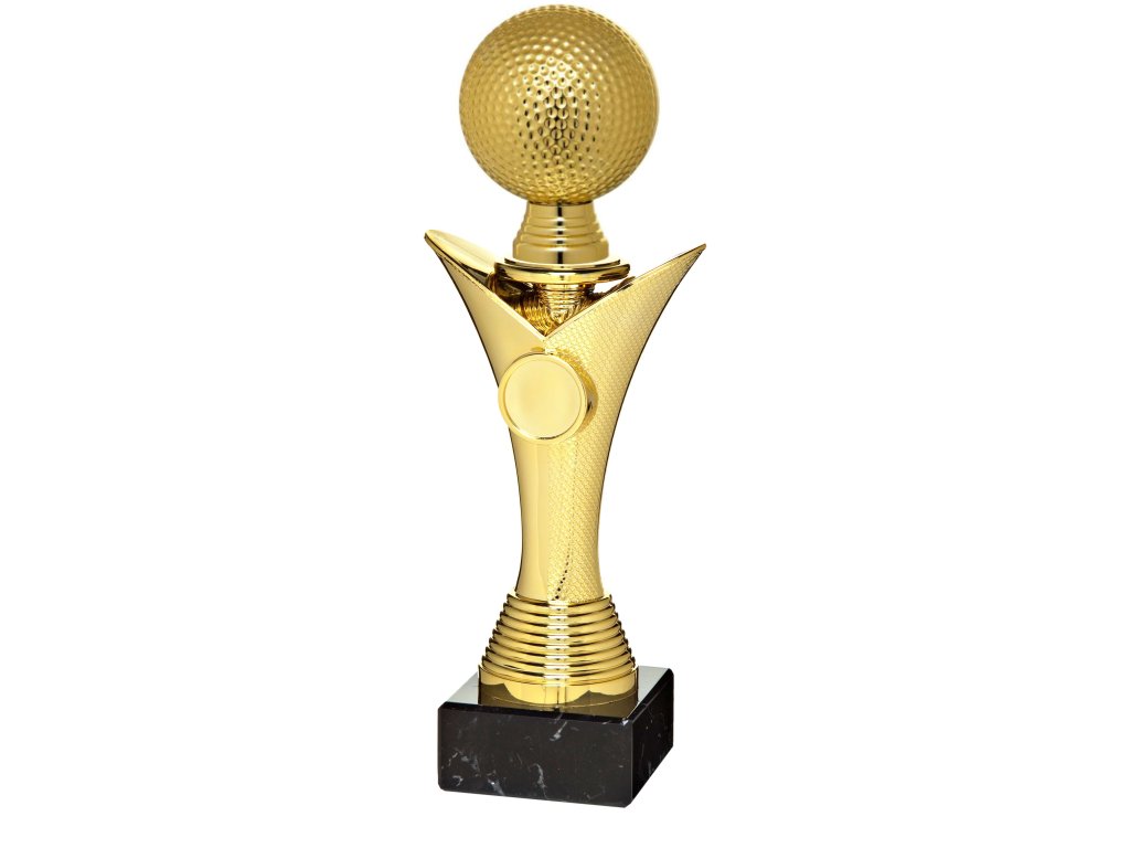 A trófea kivételes megjelenését a stílusos aranyszínű talapzat adja, amelyre egy golf témájú figura van beágyazva. A trófea kiegészíthető emblémával (nem tartozék), és ideális választás minden sportághoz + a márványalapra helyezett gravírozott tábla lehetősége. A díjazottak sorrendjének fokozatos leosztásához 3 méretben kaphatóak változatok.