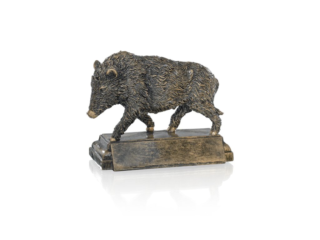 Egyedi műgyanta trófea vaddisznó/vadászmotívummal és a talapzatra gravírozott tábla elhelyezésének lehetőségével.