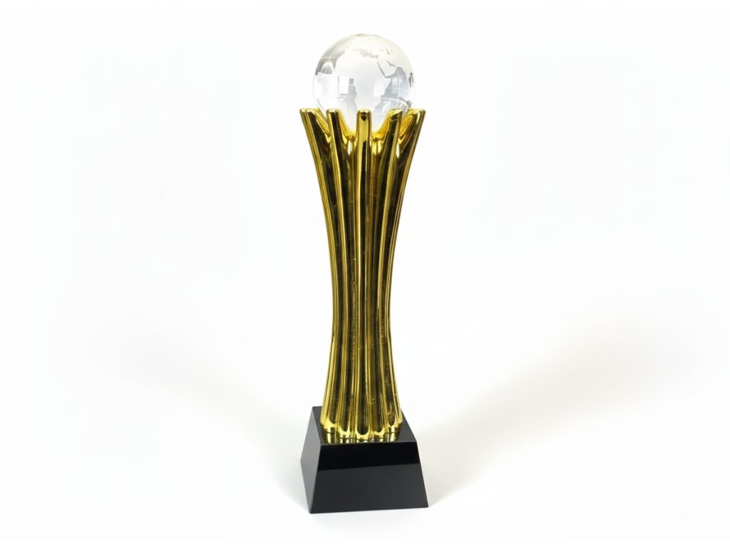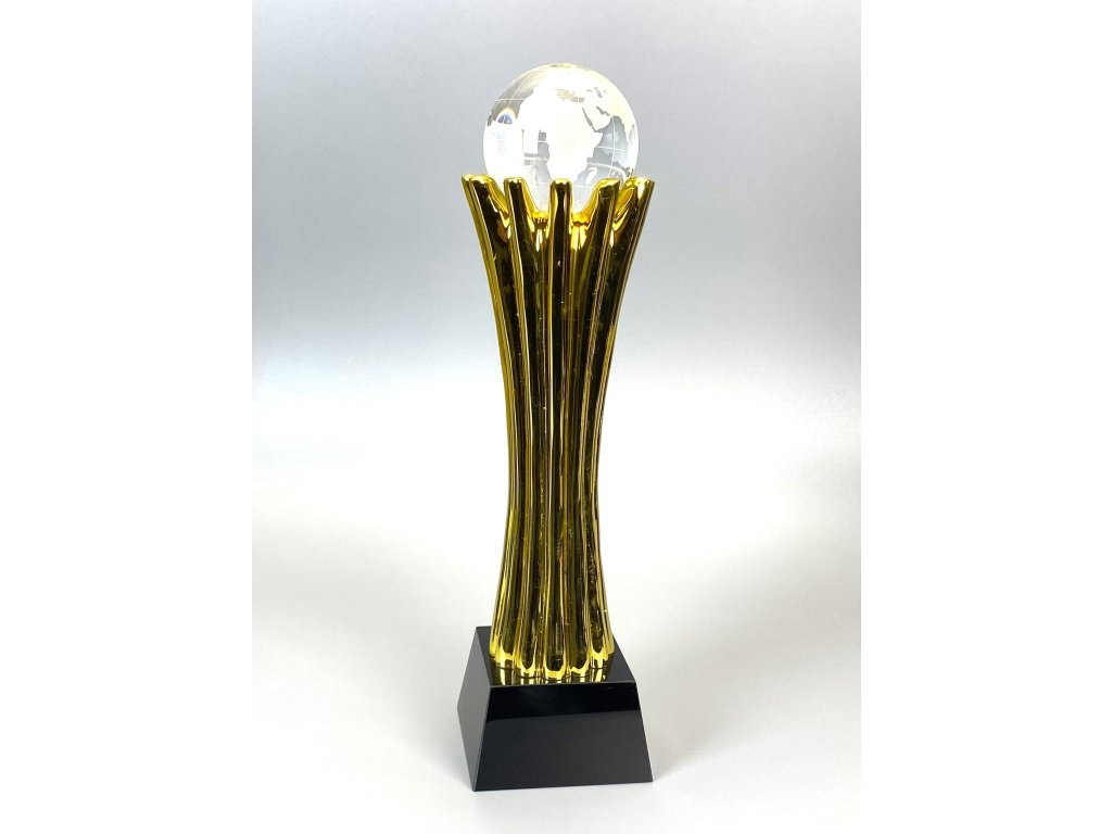 Stílusos műgyanta trófea földgömb motívummal és a talapzatra gravírozott tábla elhelyezésének lehetőségével. A trófea ideális választás a legjobb alkalmazottak vagy dolgozók/vállalkozások elismerésére.