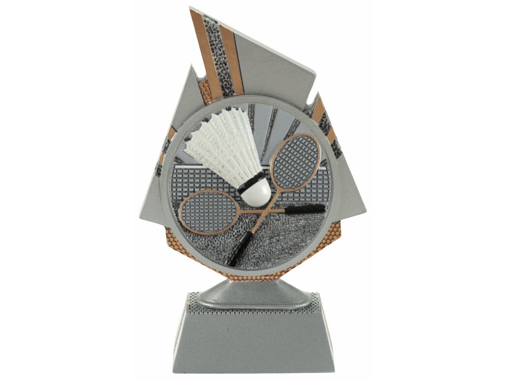 A műgyantából készült trófea stílusos megjelenése meghatározó elemet alkot, és helyet biztosít a BL - tollaslabda kategória 3D emblémájának (70 mm). A talapzaton gravírozott címke helyezhető el.