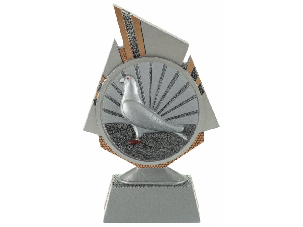 A műgyantából készült trófea stílusos megjelenése domináns elemet hoz létre, amelyben helyet kap egy 3D embléma (70 mm) a BL kategóriából - galambok, galambtenyésztés. A talapzatra gravírozott címke helyezhető.