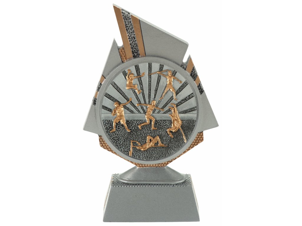 A műgyantából készült trófea stílusos megjelenése domináns elemet alkot, melyen a BL - atlétika kategória 3D emblémája (70 mm) is helyet kap. A talapzatra gravírozott címke helyezhető.