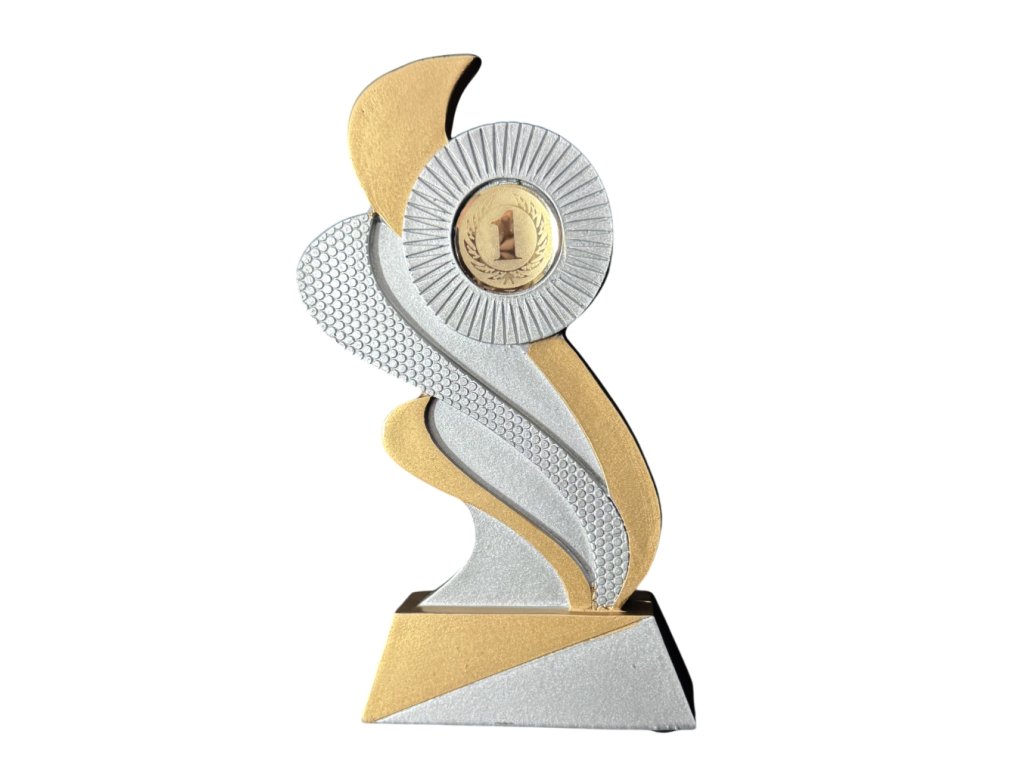 Egyedi műgyanta trófea, melyen helyet kap egy Ön által választott embléma (25mm), és lehetőség van egy gravírozott tábla elhelyezésére az alapon.