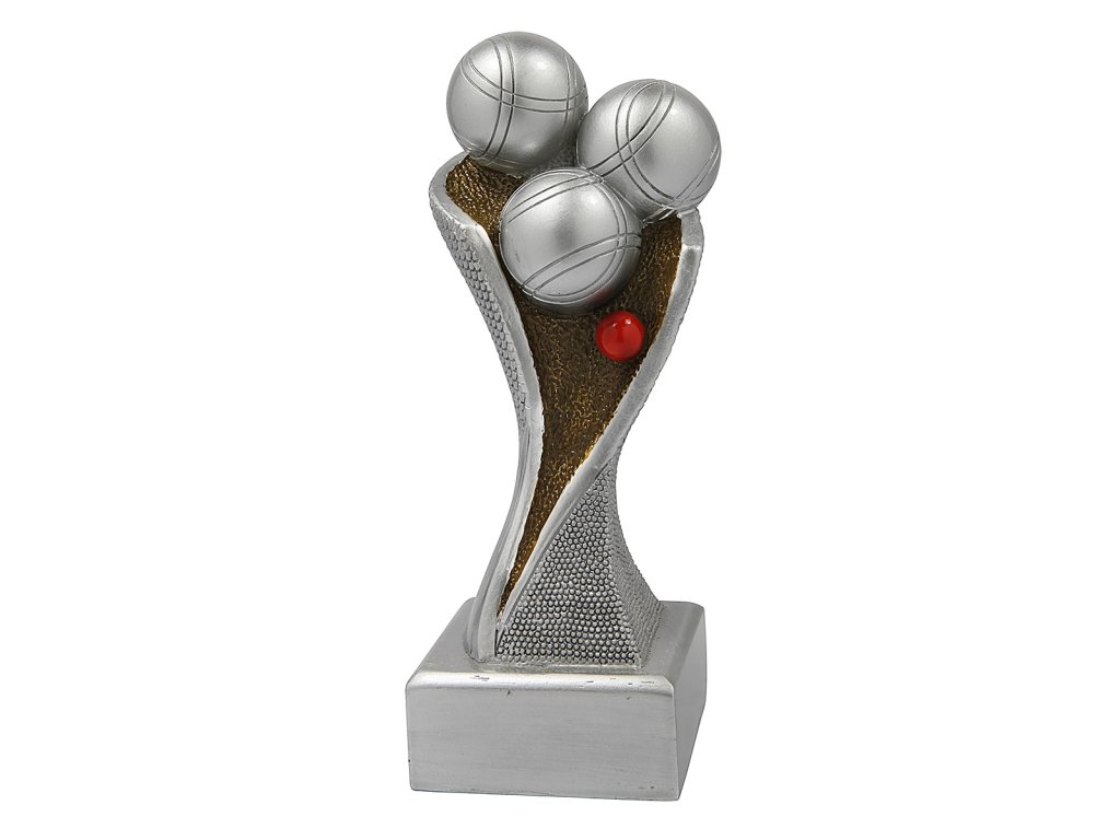 Stílusos műgyanta trófea petanque motívummal és a talapzatra gravírozott tábla elhelyezésének lehetőségével.