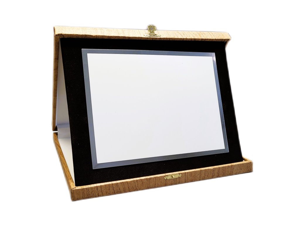 Az elegáns emléktábla egy barna, tájba illő dobozban található. A szublimációs hátlap egy fehér dekoratív lap, amelynek oldalain ezüstös tükrös részletek találhatók. A plakett kialakítása ideális választás különböző típusú társadalmi eseményekhez, különleges sporteseményekhez stb. Az ár tartalmazza a szublimálást.