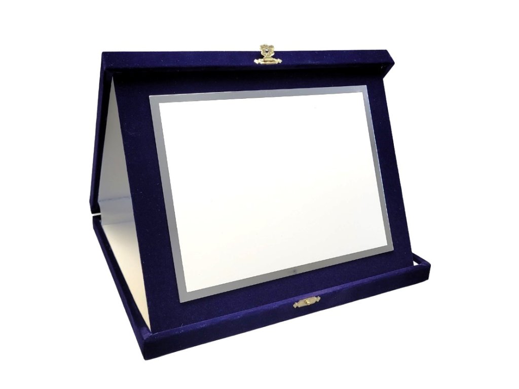 Az elegáns plakett egy kék bársony tájoló dobozban van elhelyezve. A szublimációs hátlap egy fehér dekoratív lap, amelynek oldalain ezüstös tükrös részletek találhatók. A plakett kialakítása miatt ideális választás különböző típusú társadalmi eseményekre, különleges sporteseményekre stb. Az ár tartalmazza a szublimálást.